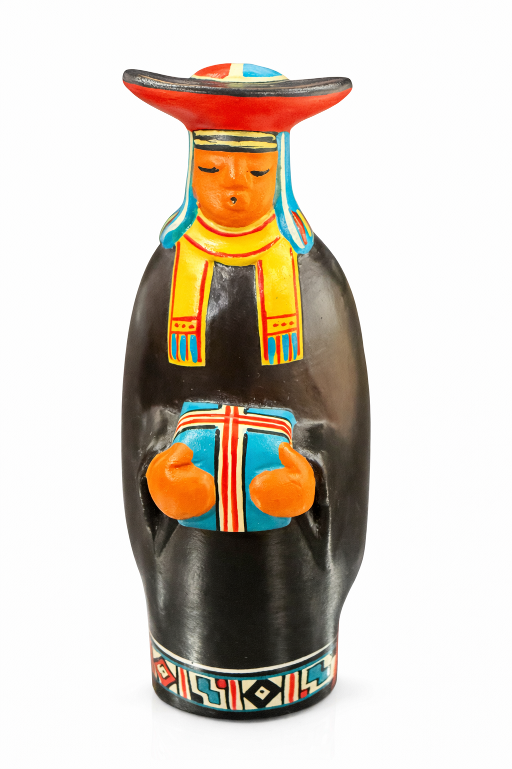 Esta exclusiva pieza de cerámica, elaborada 100% a mano por el reconocido artista peruano Gustavo Salas, es una expresión auténtica del arte arte musical con una mezcla de la cultura andina. Su diseño, compuesto por 1 pieza con finos detalles y acabados, inspirado en el sikuri en juli, es una expresión musical y dancística fundamental de la cultura andina, arraigada principalmente en las comunidades aymaras de la región de Puno.