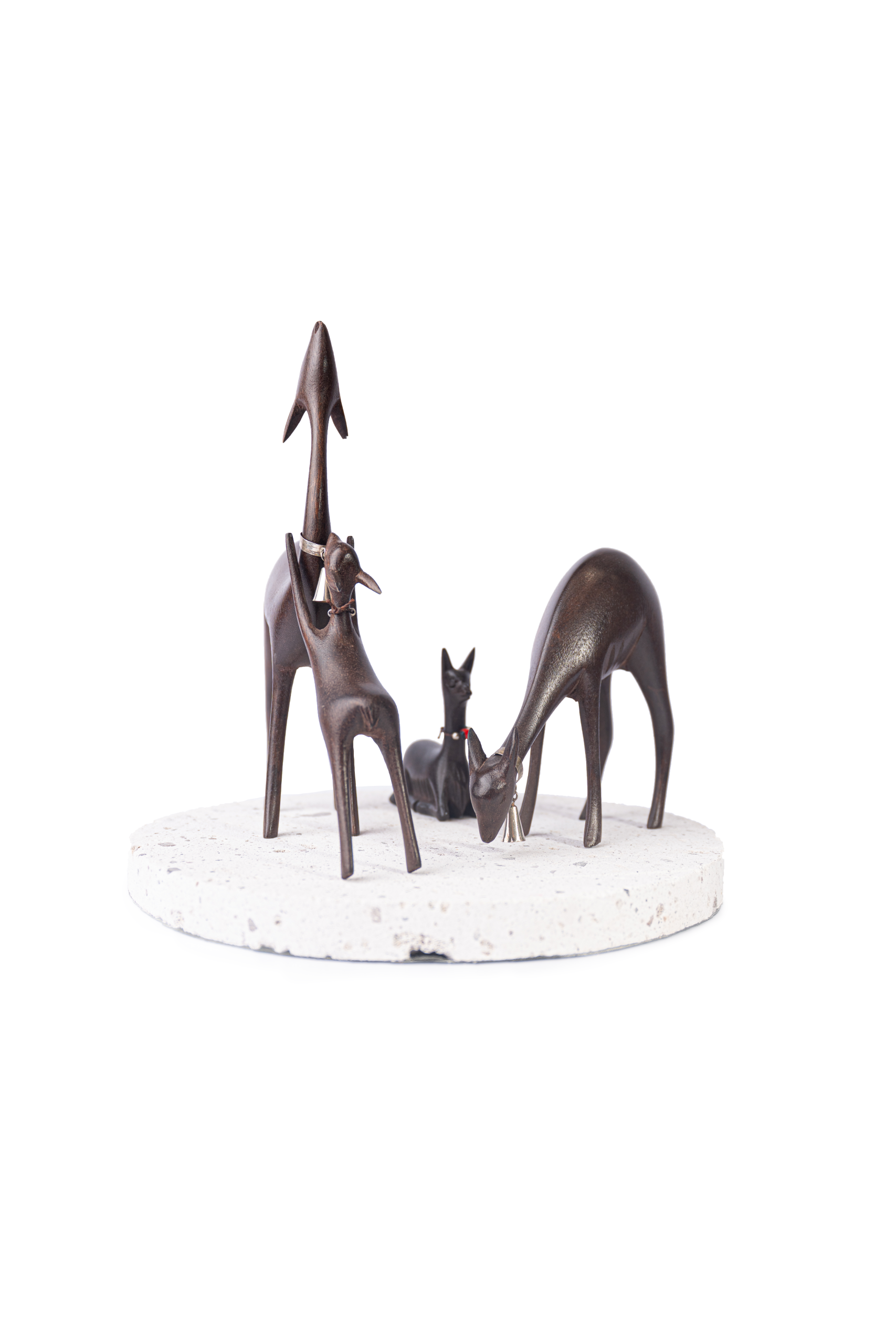 Esta familia de vicuñas y base de sillar ha sido cuidadosamente elaborada para rendir homenaje a uno de los símbolos más puros y elegantes de los Andes peruanos. Cada figura refleja la gracia, nobleza y armonía de la vicuña, animal sagrado que representa la belleza natural y la conexión espiritual con la tierra.