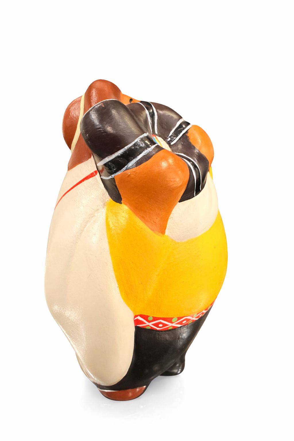 Esta exclusiva pieza de cerámica, elaborada 100% a mano por el reconocido artista peruano Gustavo Salas, es una expresión auténtica del arte arte musical con una mezcla de la cultura andina. Su diseño, compuesto por 1 pieza con finos detalles y acabados, inspirado en el sikuri en juli, es una expresión musical y dancística fundamental de la cultura andina, arraigada principalmente en las comunidades aymaras de la región de Puno.
