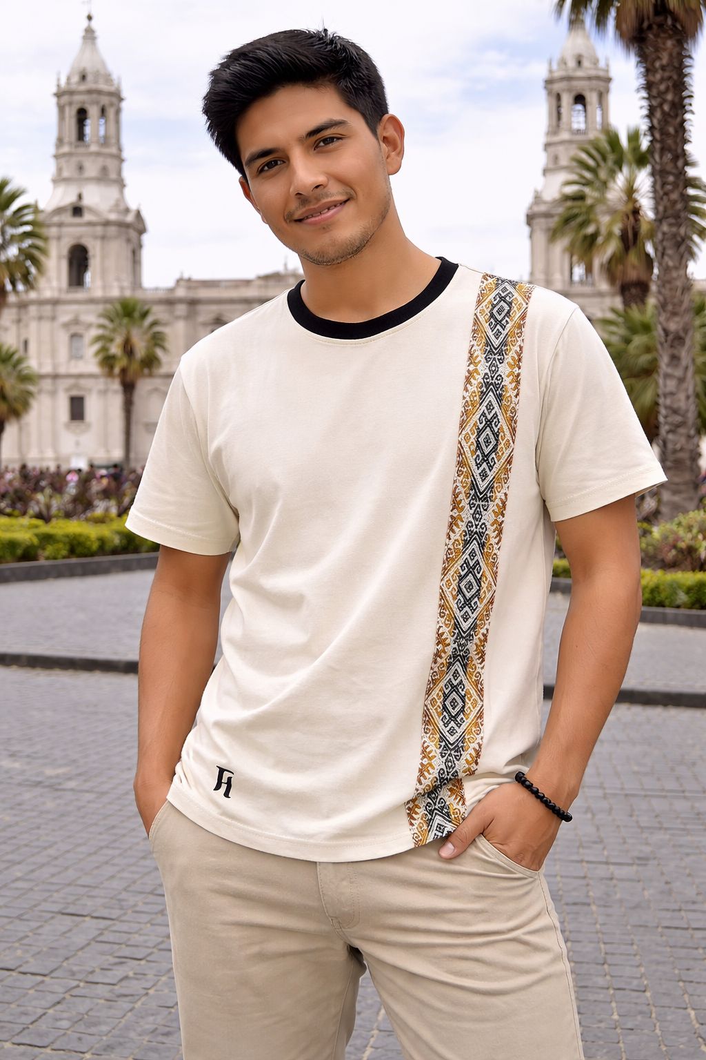 Descubre la fusión perfecta entre diseño contemporáneo y tradición peruana. Este polo destaca por su elegante aplicación lateral con tejido de inspiración andina, que aporta un toque auténtico y sofisticado a una prenda básica.
